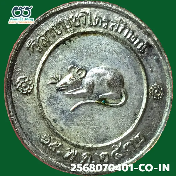 เหรียญโชคดี หลังหนู หลวงพ่อเกษม เขมโก เนื้อเงิน สำนักสุสานไตรลักษณ์ ลำปาง ปี 2532 วัตถุมงคลสายเหนือ สุดยอดแห่งความโชคดี นักสะสมรุ่นเก่าๆ มักจะมีการเก็บพระไว้ในกรอบป้องกันการโดนสัมผัส เหรียญจึงเกิดการเปลี่ยนแปลงเนื้อตามธรรมชาติ เหรียญมีร่องรอยการแกะบล็อกสด ตัวหนังสือคม ชัด ลึก มีร่องรอยสนิมเกิดจากความเก่าของโลหะที่มีอายุมาก แท้ดูง่าย จำนวนผลิดน้อย หาพบยาก แบ่งปันให้บูชา ให้ผู้ที่มีบุญสัมพันธ์เก็บไว้เป็นคู่บารมี สะสมไว้วันข้างหน้า ให้บูชาจะยิ่งสูงขึ้นไปกว่าปัจจุบัน เหรียญนี้เป็นการครอบครองของ Amulet Ping