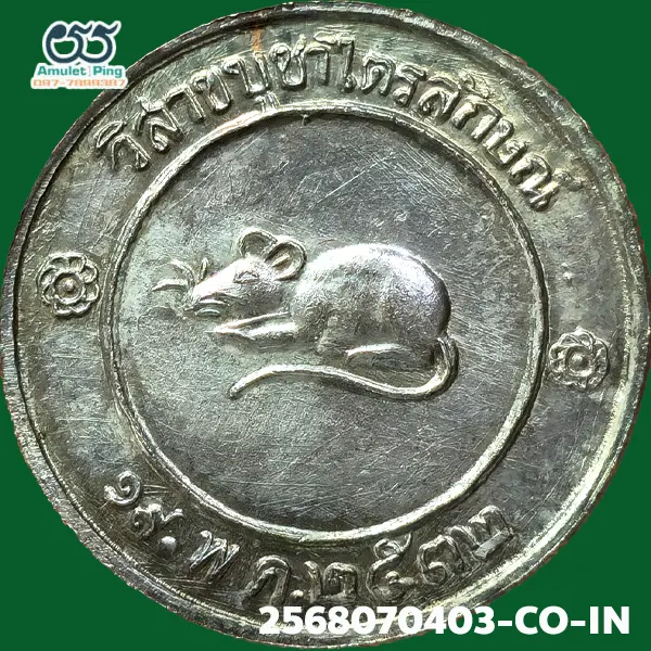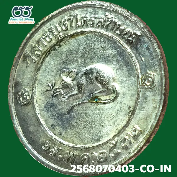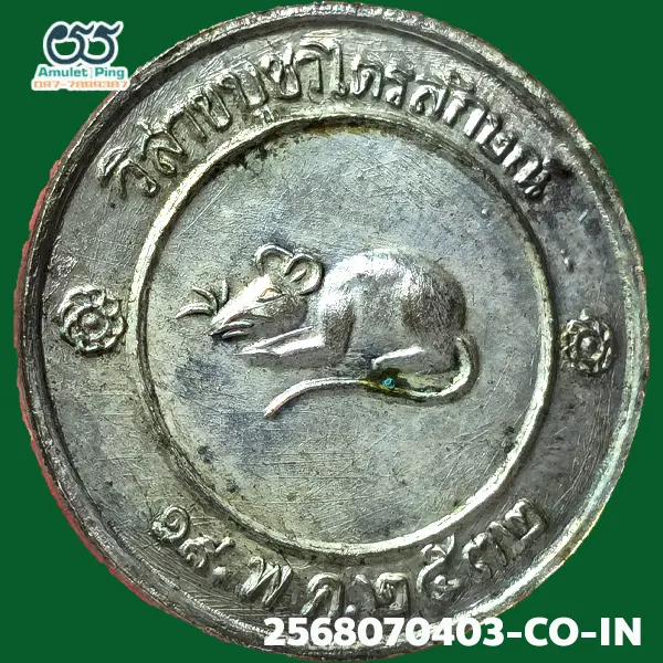 เหรียญโชคดี หลังหนู หลวงพ่อเกษม เขมโก เนื้อเงิน สำนักสุสานไตรลักษณ์ ลำปาง ปี 2532 วัตถุมงคลสายเหนือ สุดยอดแห่งความโชคดี นักสะสมรุ่นเก่าๆ มักจะมีการเก็บพระไว้ในกรอบป้องกันการโดนสัมผัส เหรียญจึงเกิดการเปลี่ยนแปลงเนื้อตามธรรมชาติ เหรียญมีร่องรอยการแกะบล็อกสด ตัวหนังสือคม ชัด ลึก มีร่องรอยสนิมเกิดจากความเก่าของโลหะที่มีอายุมาก แท้ดูง่าย จำนวนผลิดน้อย หาพบยาก แบ่งปันให้บูชา ให้ผู้ที่มีบุญสัมพันธ์เก็บไว้เป็นคู่บารมี สะสมไว้วันข้างหน้า ให้บูชาจะยิ่งสูงขึ้นไปกว่าปัจจุบัน เหรียญนี้เป็นการครอบครองของ Amulet Ping
